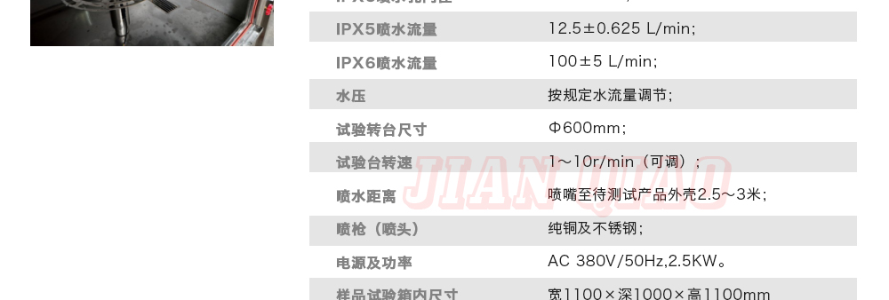 用途:可程式淋雨試驗(yàn)箱適用于電工電子產(chǎn)品(包括組件)、燈具照明產(chǎn)品、汽車摩托車零部件外殼和密封件等產(chǎn)品做外殼防護(hù)等級(jí)測試(IP 防水等級(jí)試驗(yàn)),模擬其產(chǎn)品在運(yùn)輸和使用期間可能受